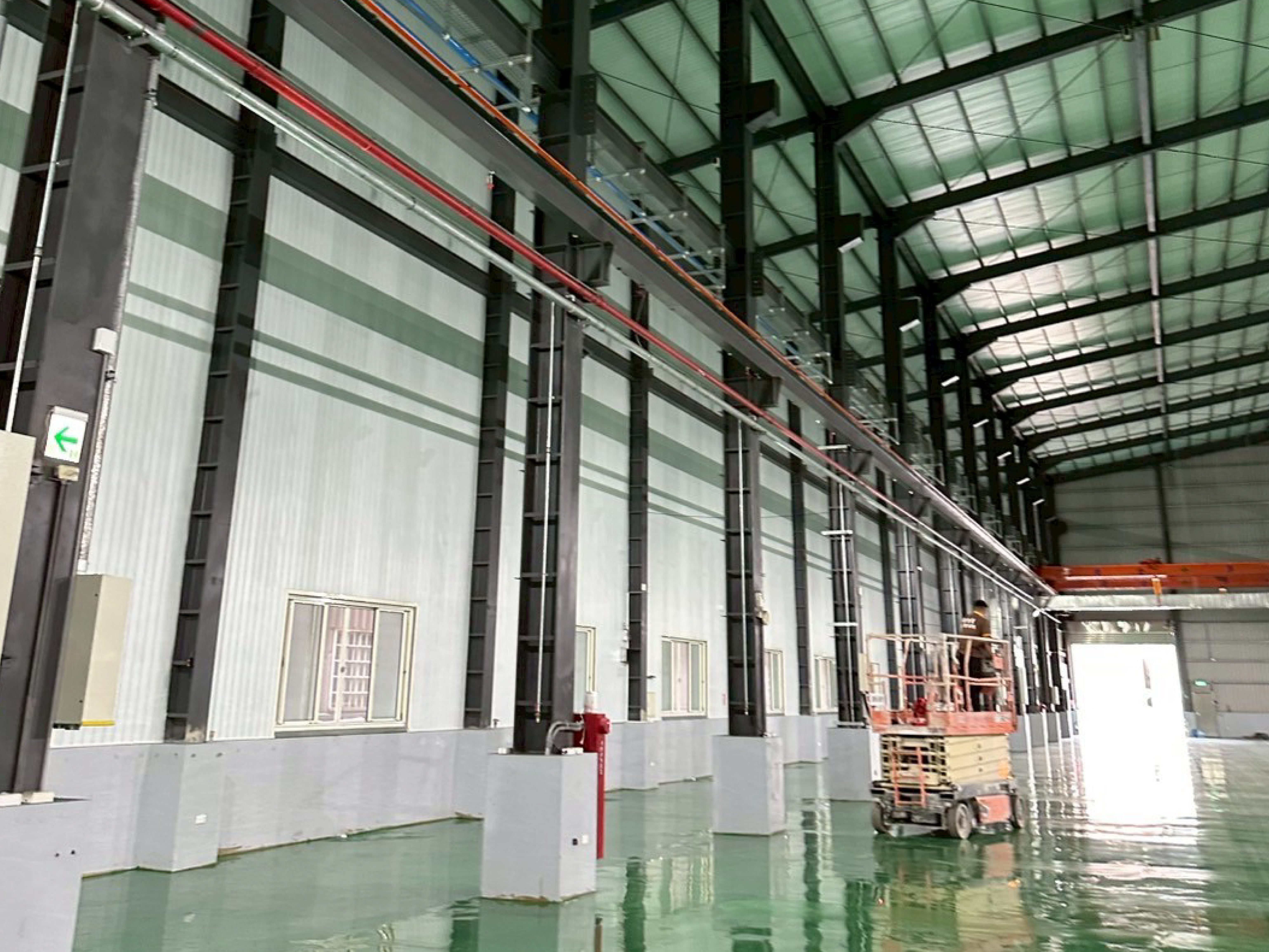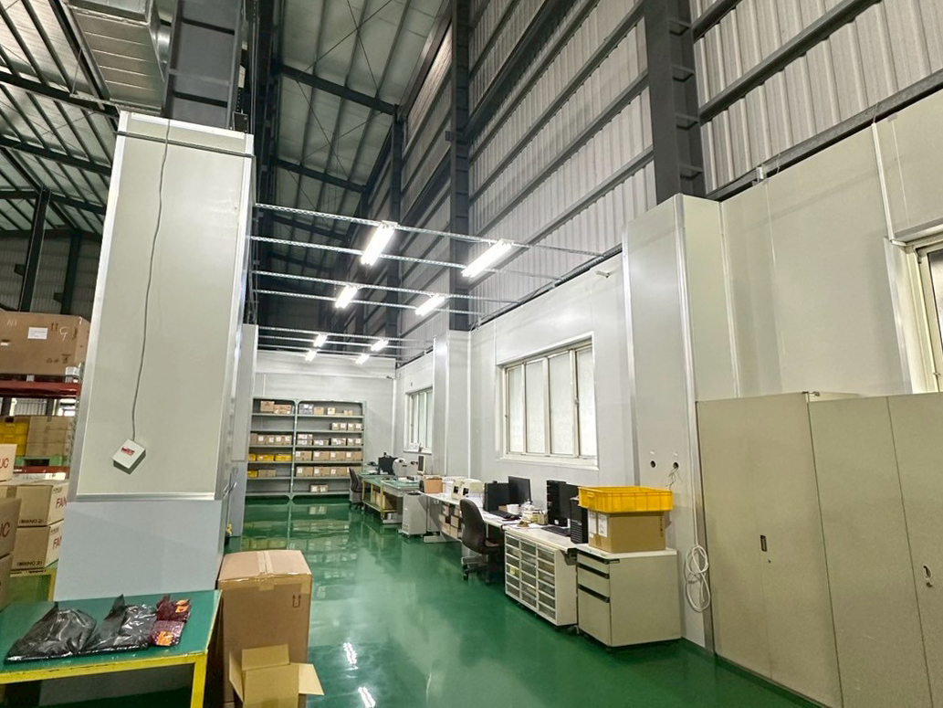 開放式空間與挑高天花板利於機具配置。光照明亮、通風良好,益於員工健康與環境永續的重視。